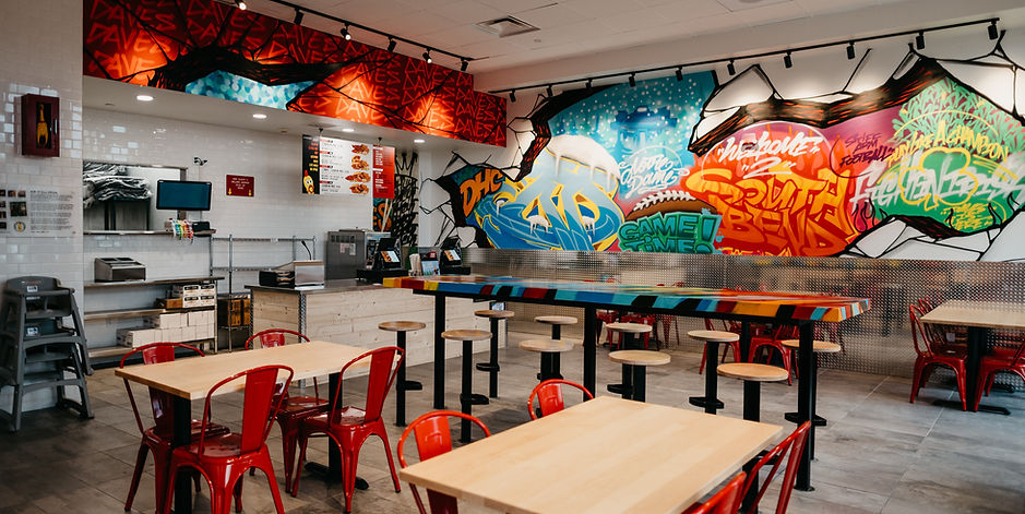 Michuda Construction is proud to have completed the build-out of Dave's Hot Chicken at Eddy Street Commons, directly across from the iconic Notre Dame stadium. This project, involved creating a vibrant and welcoming space that embodies the spirited essence of Dave's Hot Chicken, tailored to the dynamic and diverse university community.